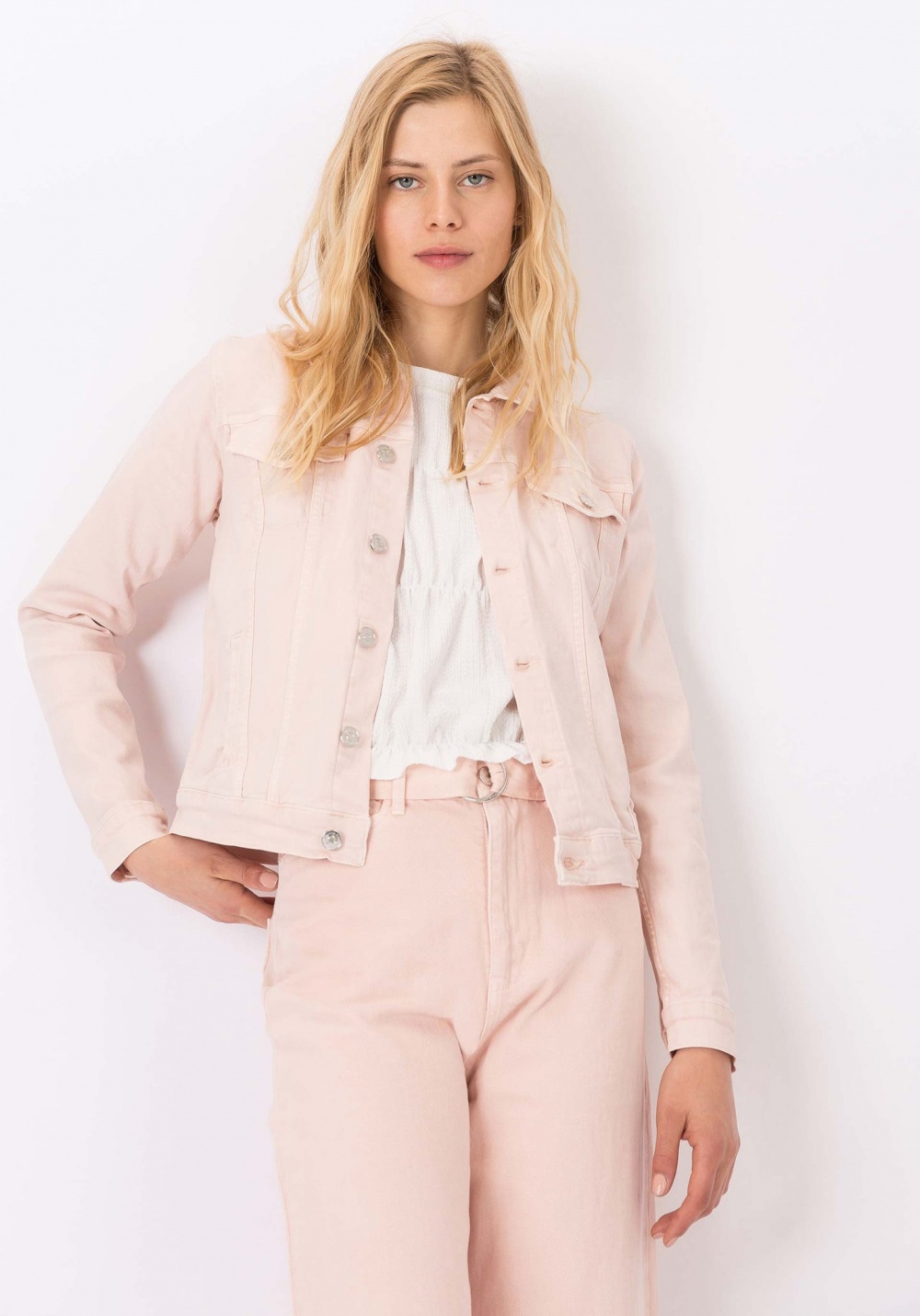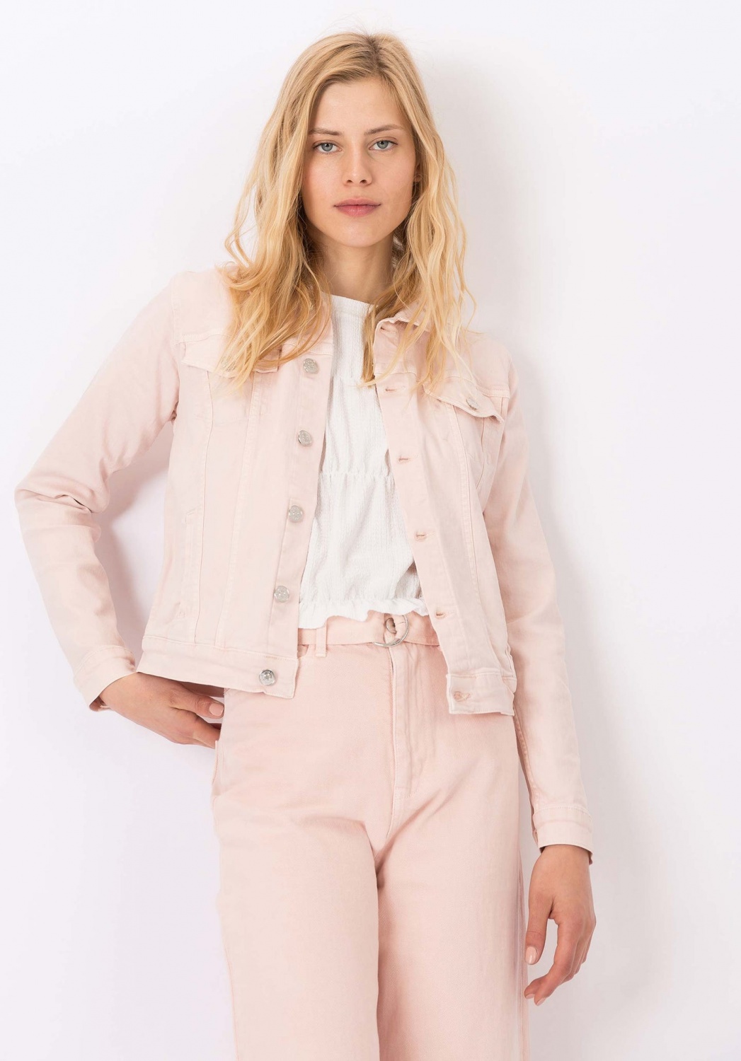 Fémgombos, normál derekú vászon farmer kabát