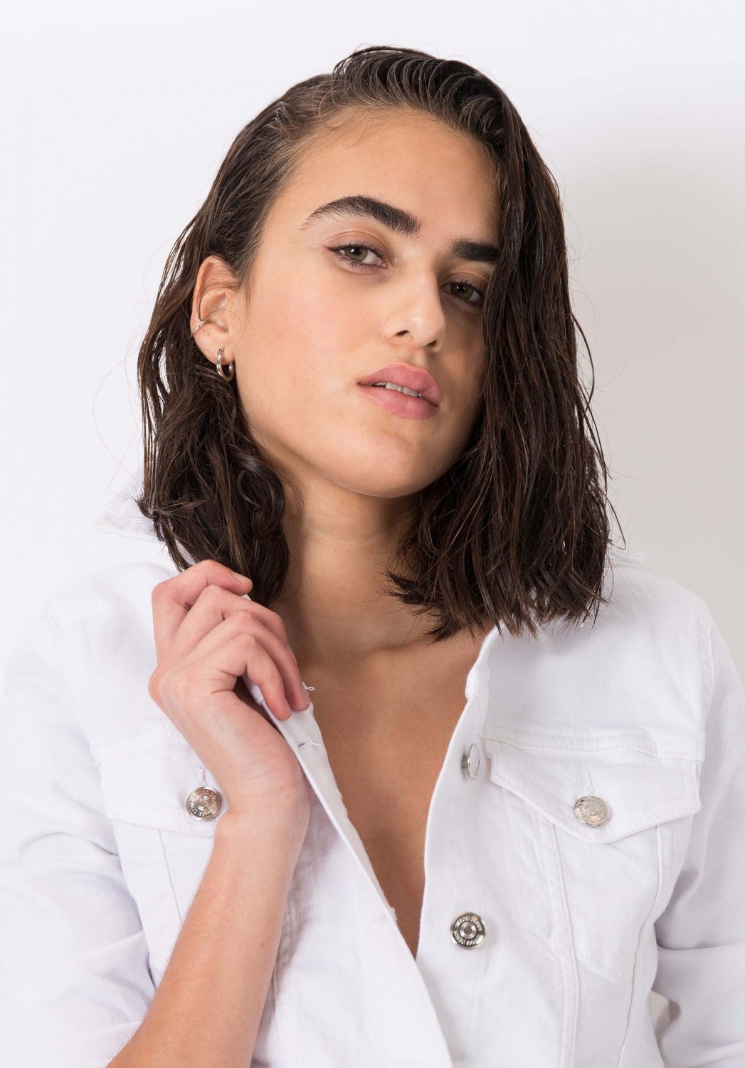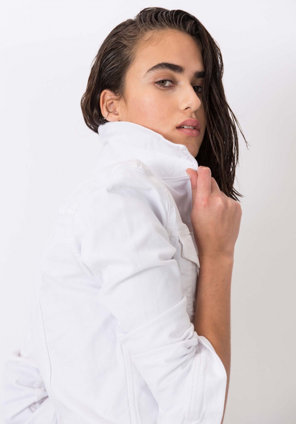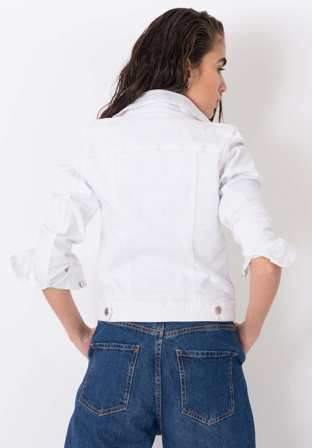 Fémgombos, normál derekú vászon farmer kabát