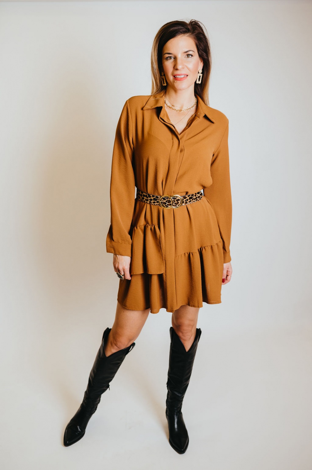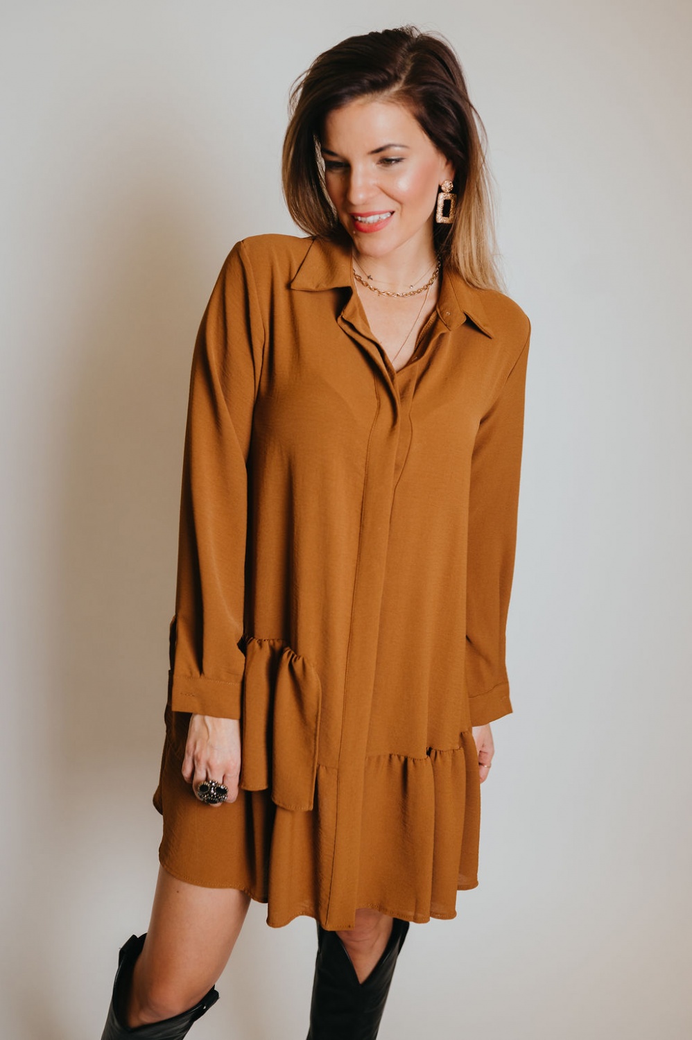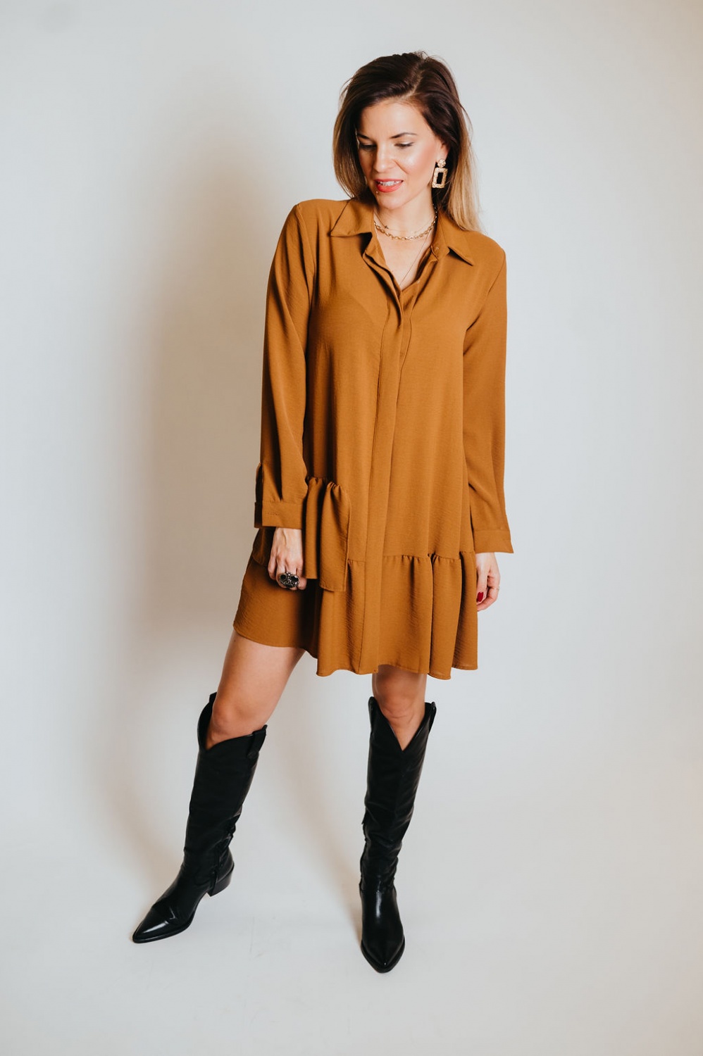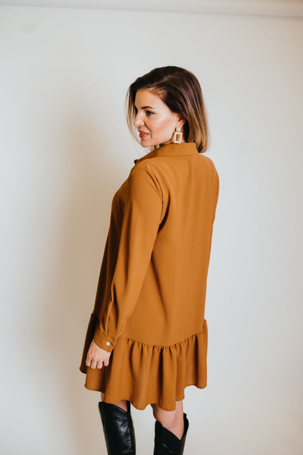 Fodros aljú, bő fazonú, rövid ing ruha