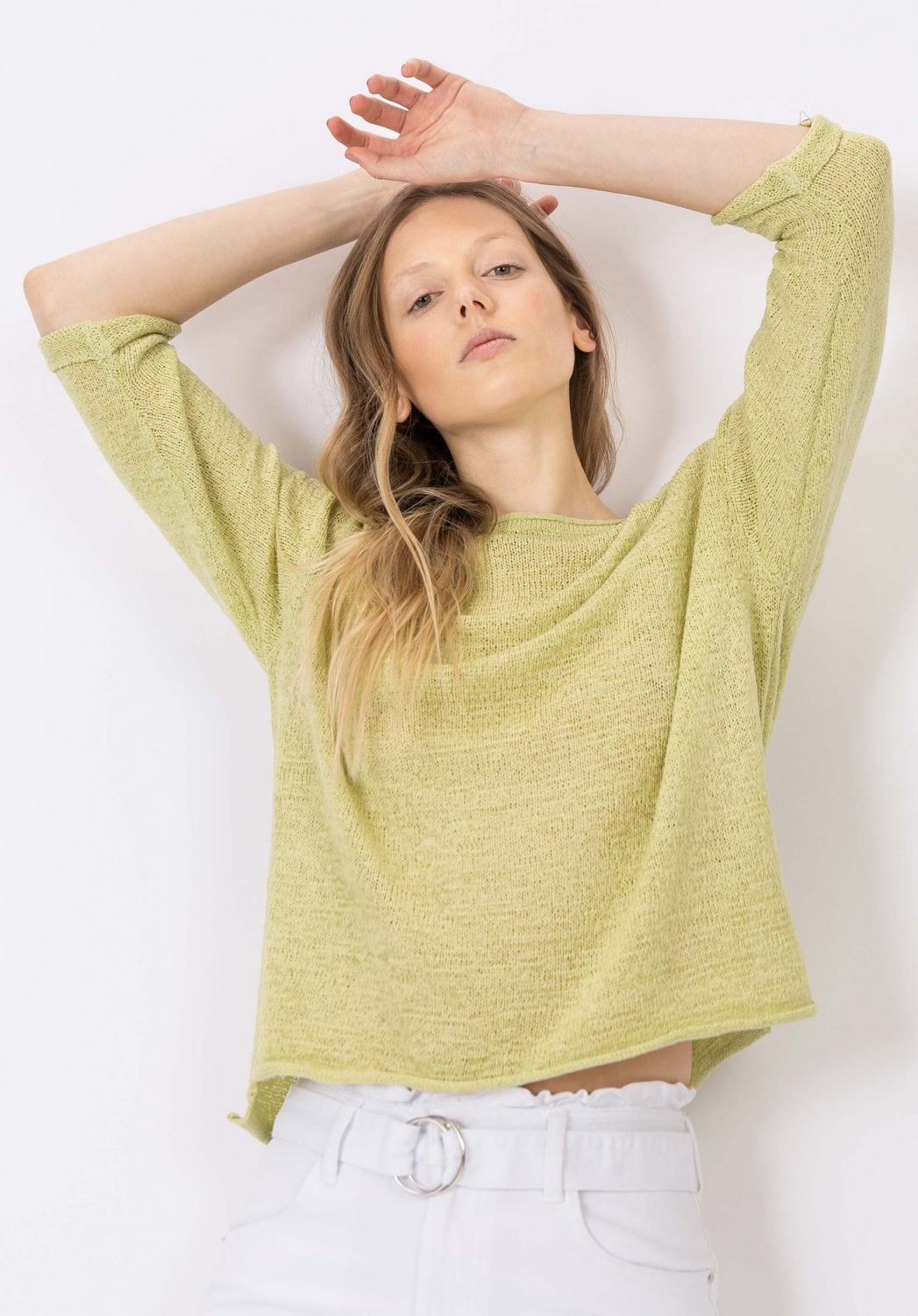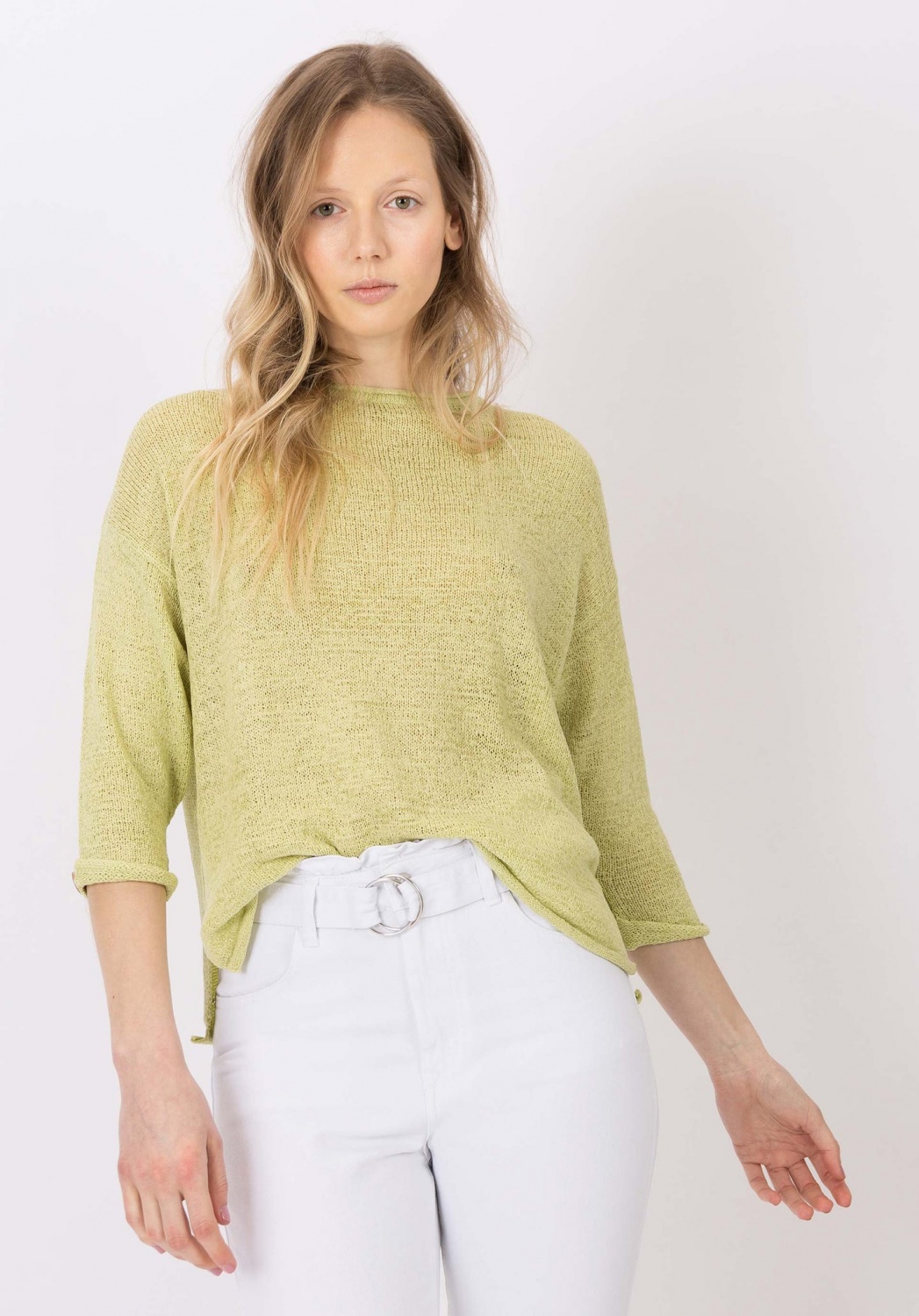 Háromnegyedes ujjú, laza, kötött pulcsi