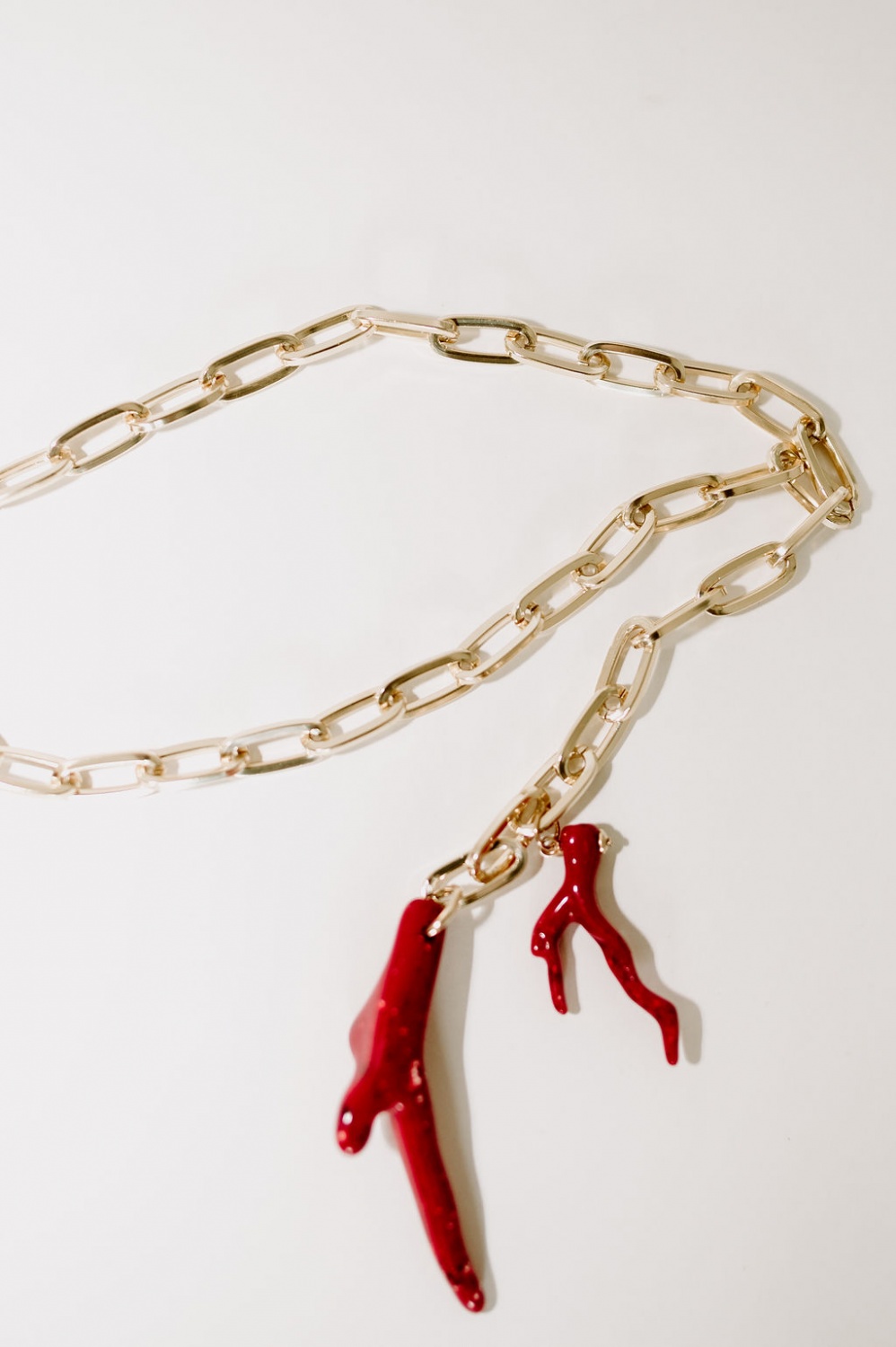 Hosszú, korall bizsu nyaklánc, műanyag és fém