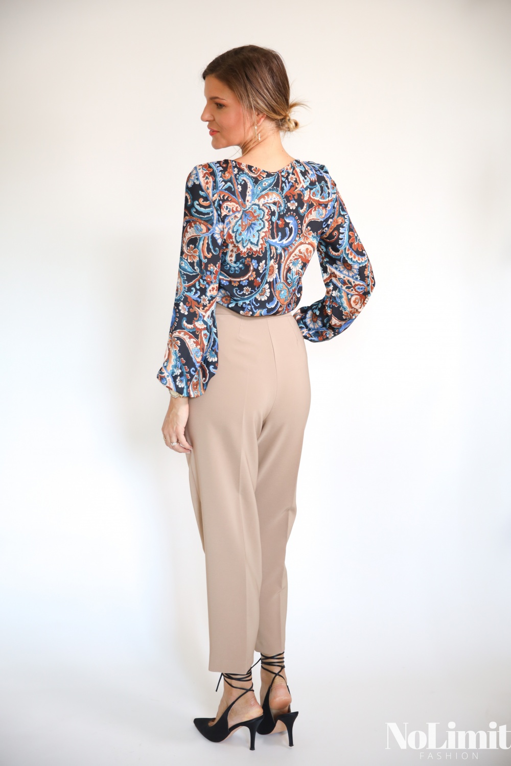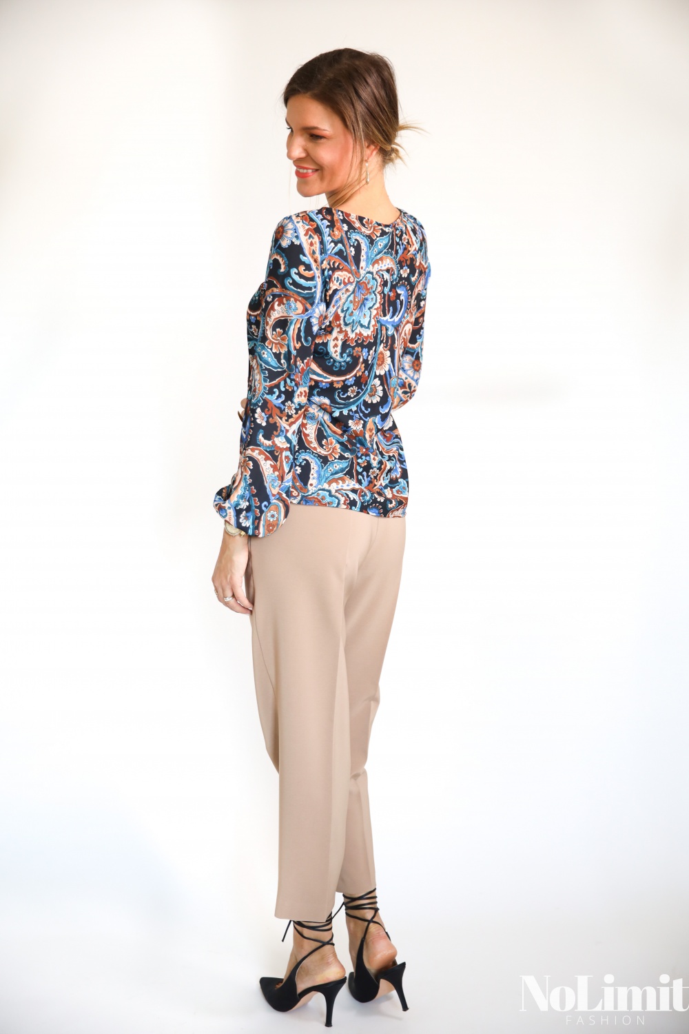 Kasmír mintás, hosszú ujjú, kerek nyakú, egygombos felső