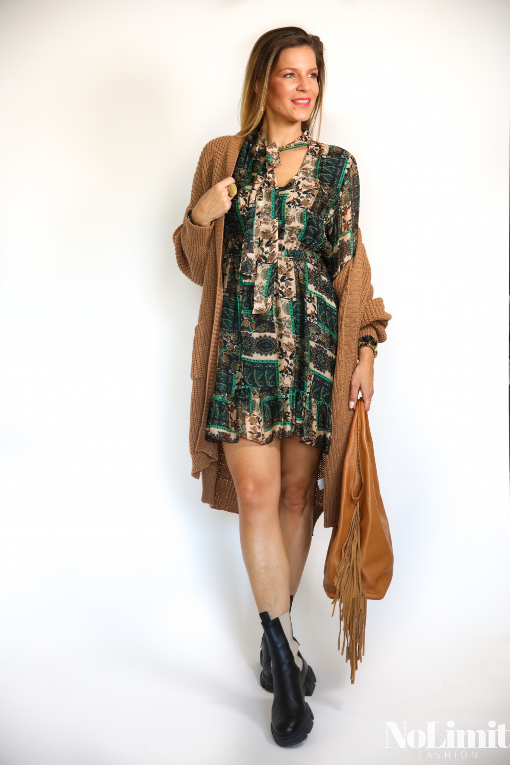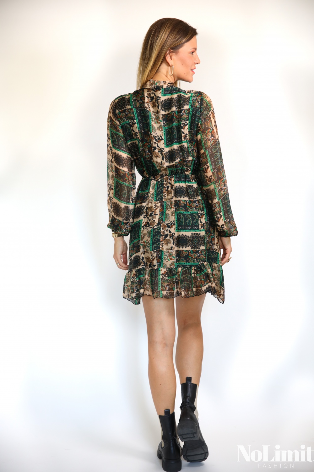 Kasmír mintás, selymes mini ruha, nyakba megkötős