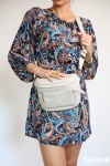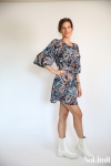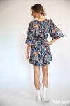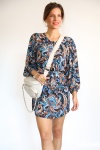 Kék-színes kasmír mintás, kerek nyakú, mini ruha