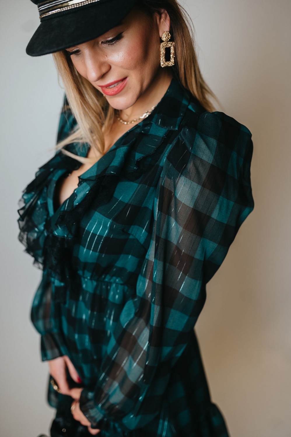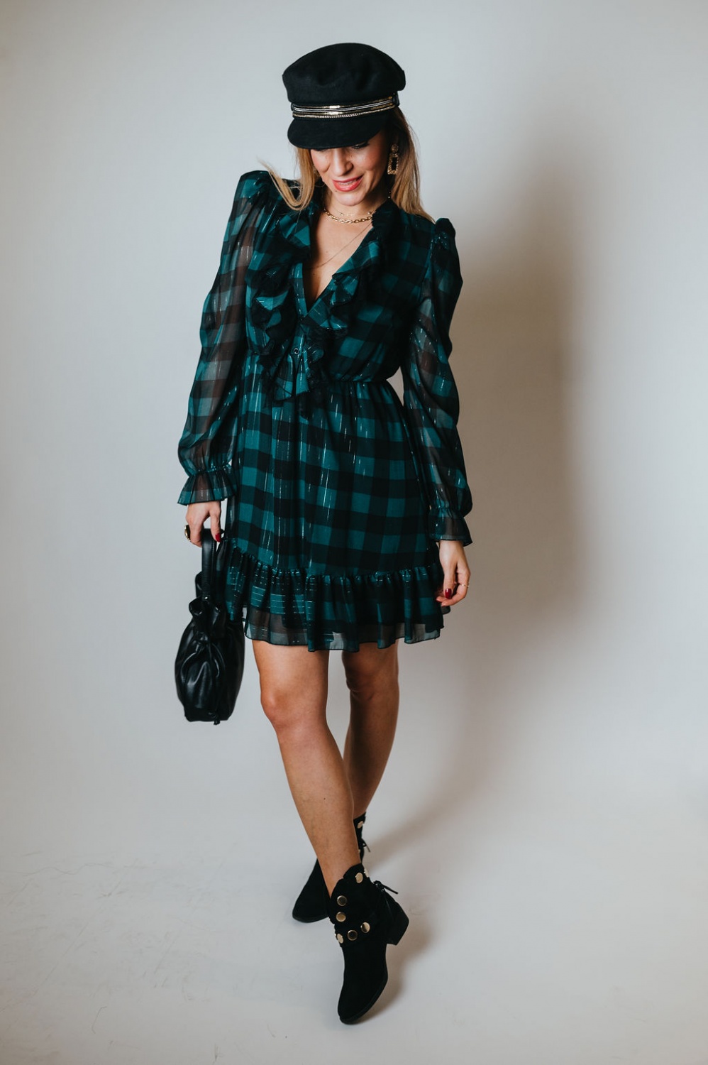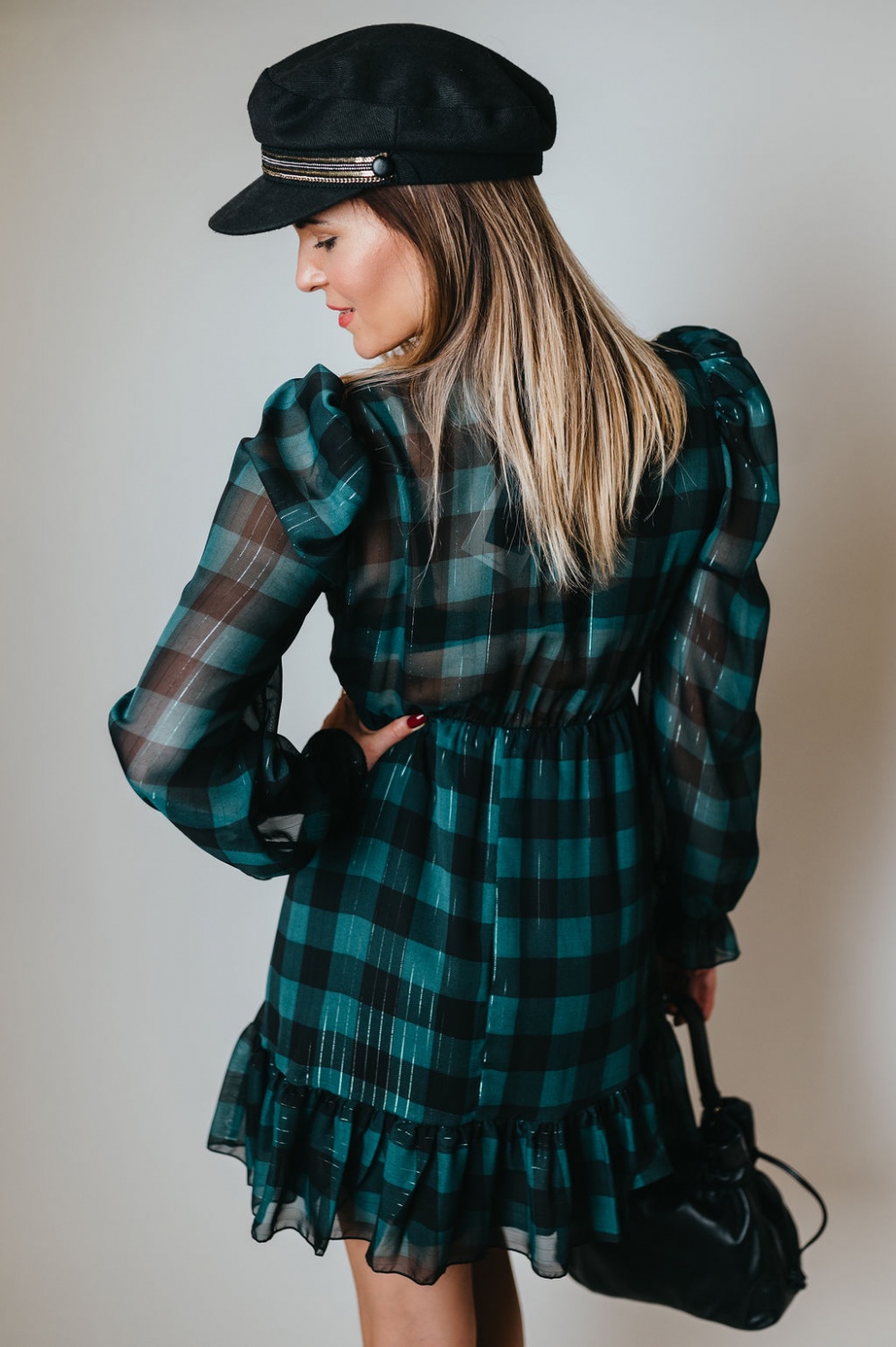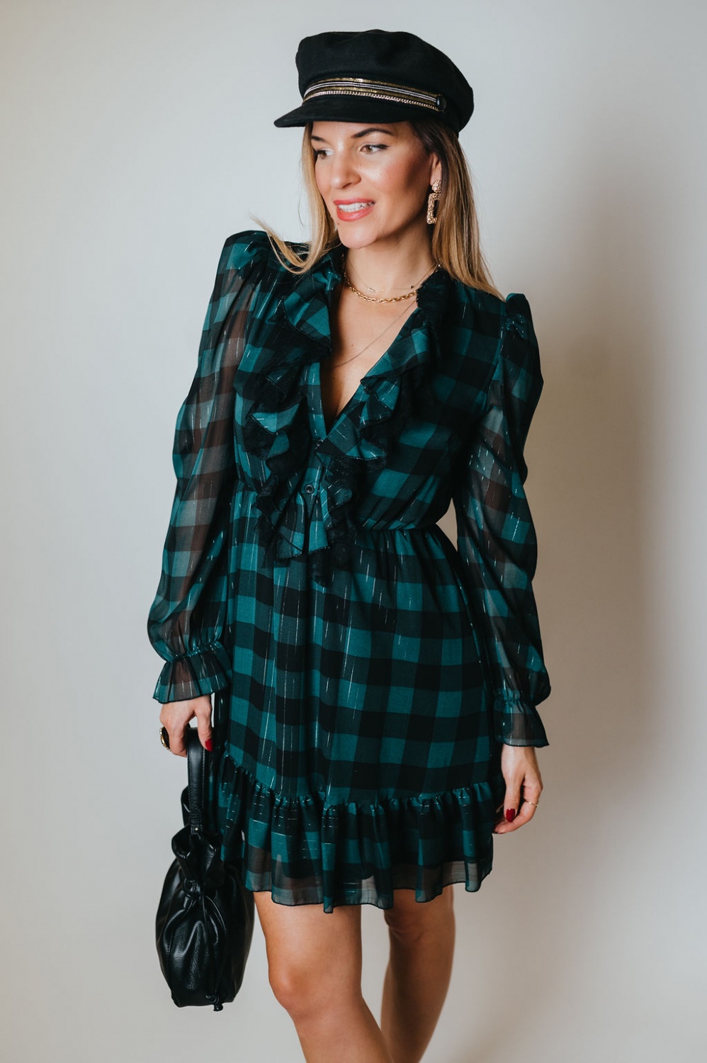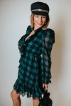 Kockás, fodros, mini ruha