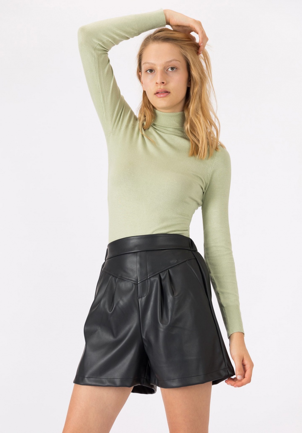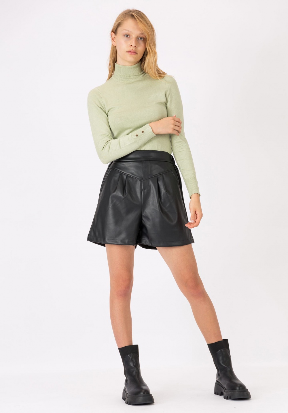 Műbőr, gumis derekú short