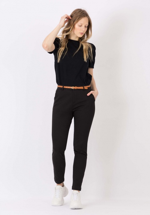 • Magas derekú, répa fazonú vászon nadrág övvelBarna