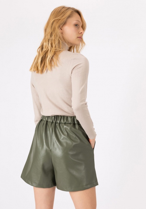• Műbőr, gumis derekú shortKeki