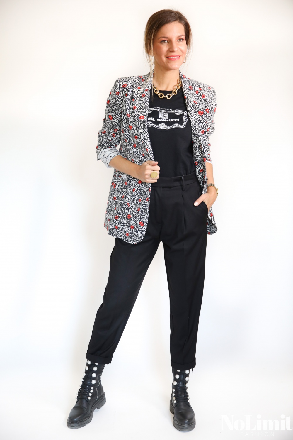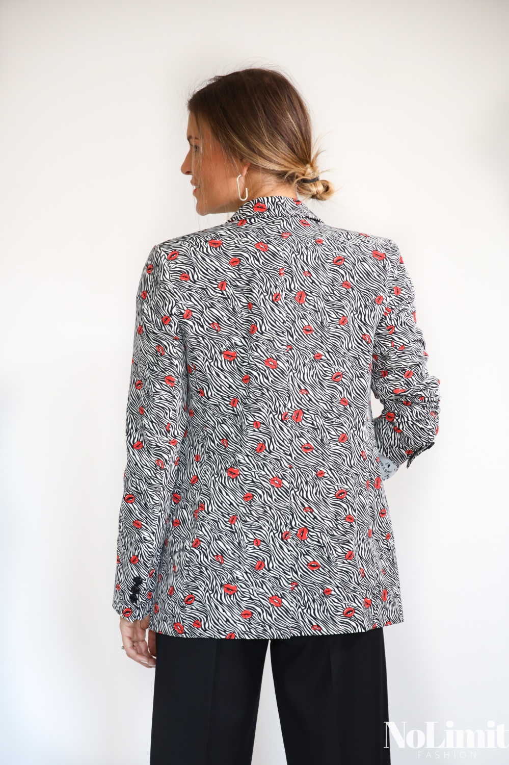 Piros szájas, zebra mintás zakó
