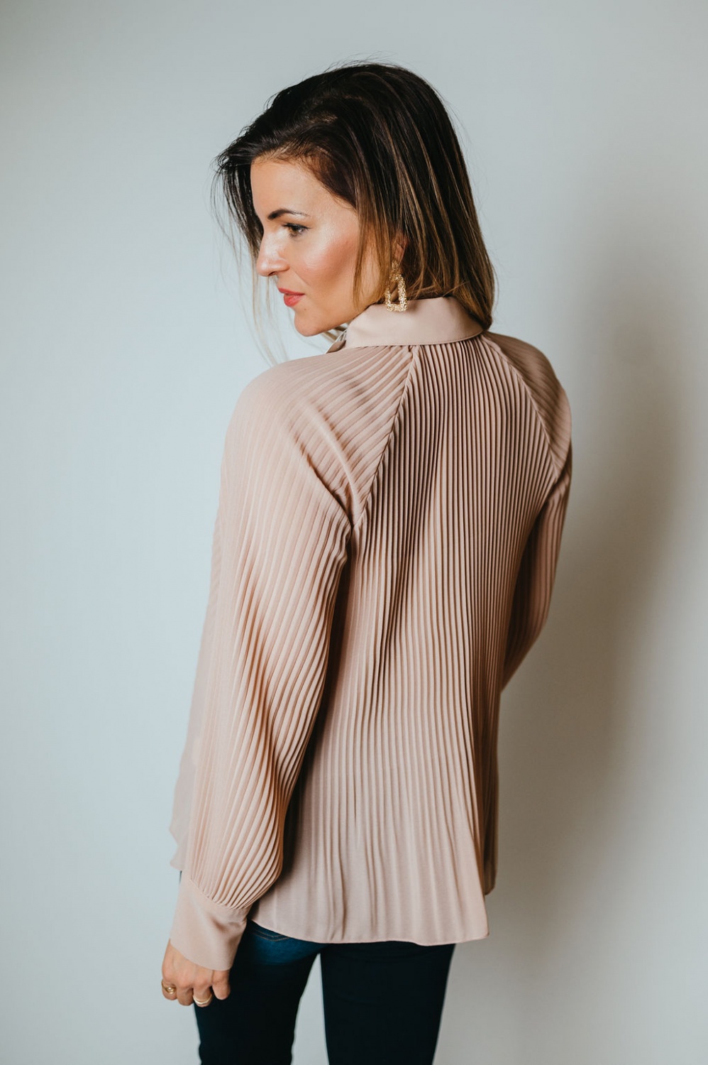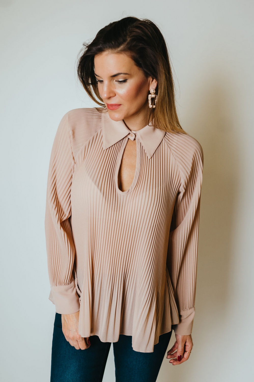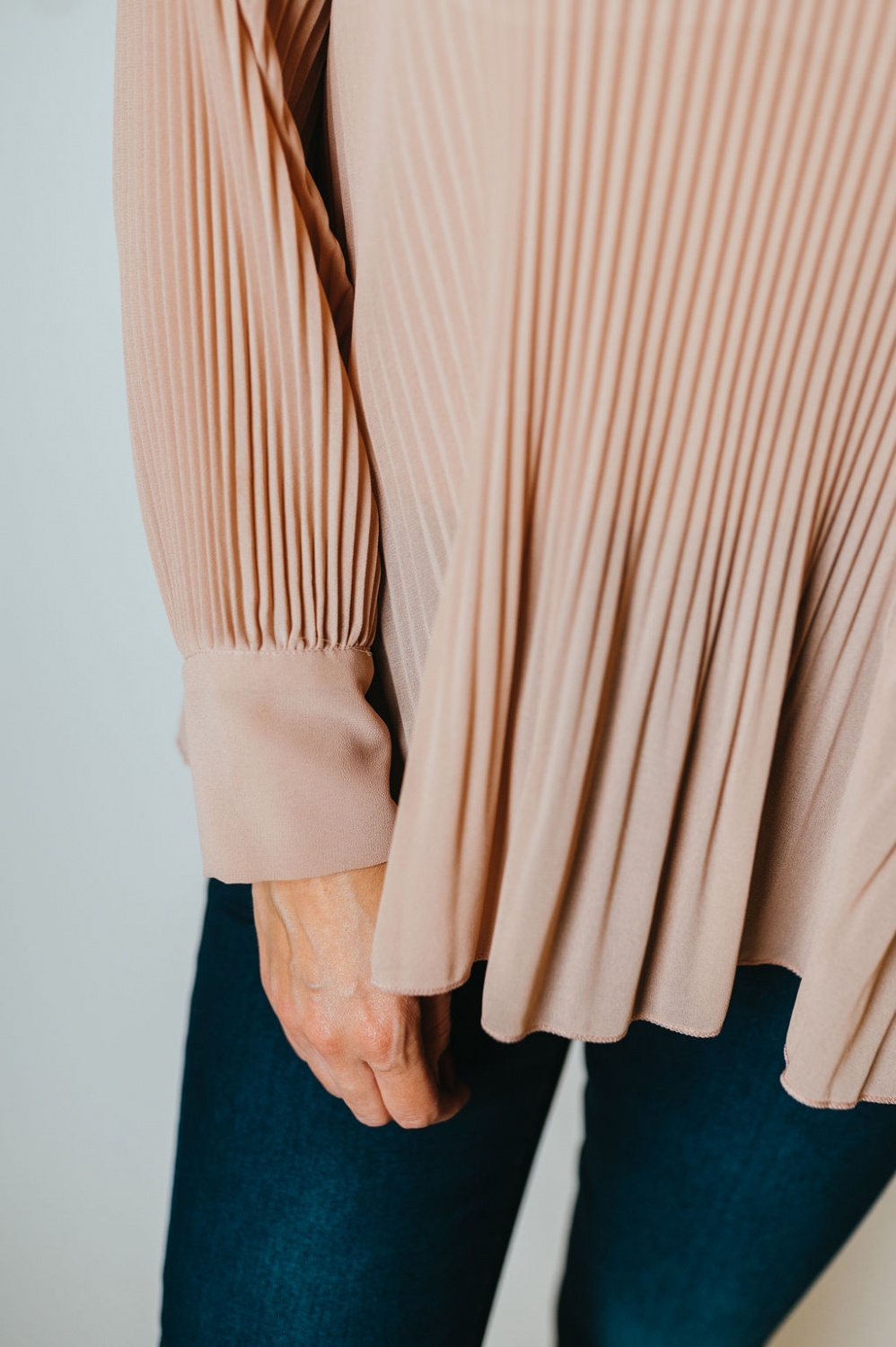 Pliszírozott, csepp kivágású, hosszú ujjú blú