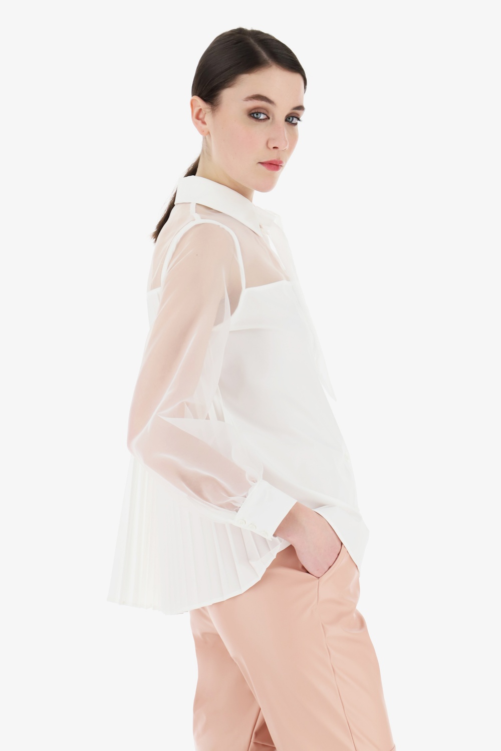 Áttetsző ujjú ing pliszírozott háttal