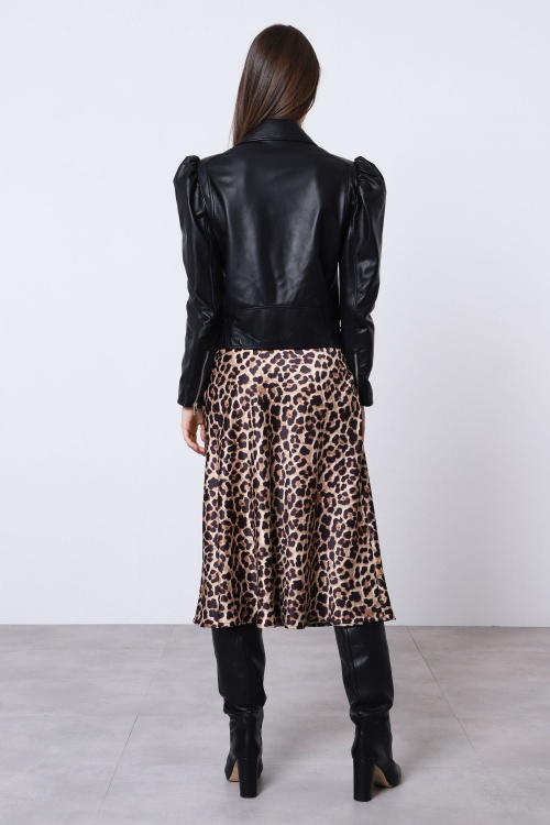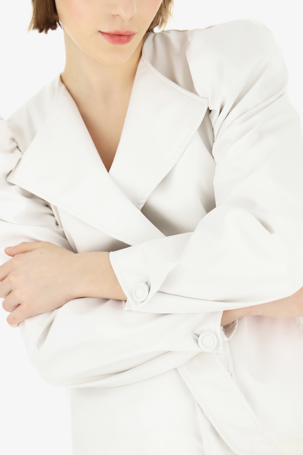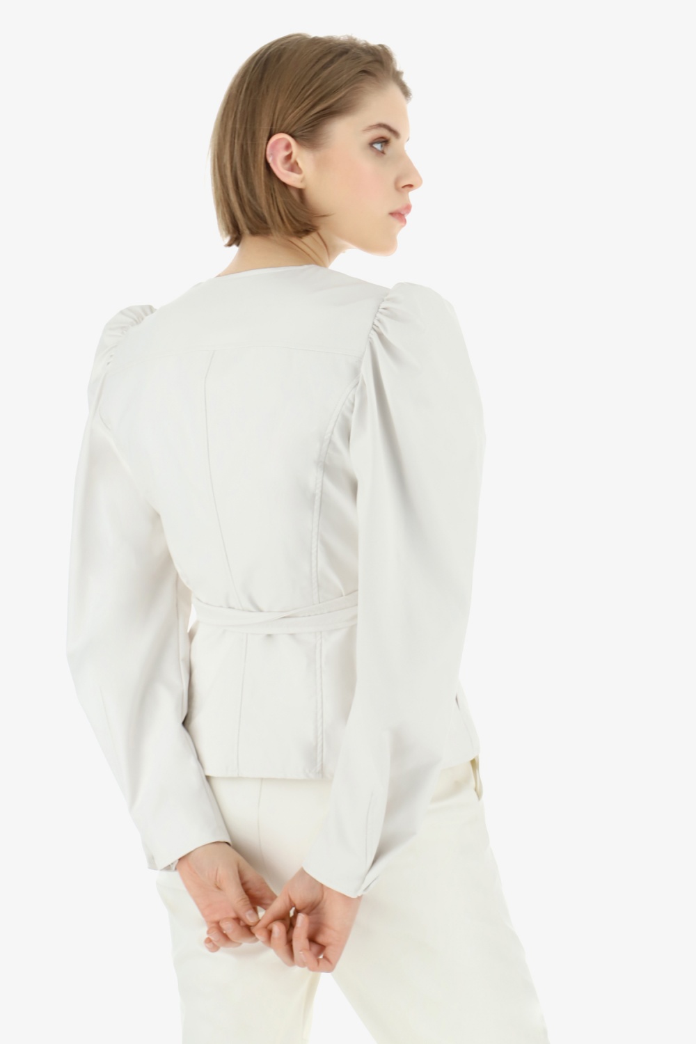 Puffos ujjú, megkötős műbőr kabát