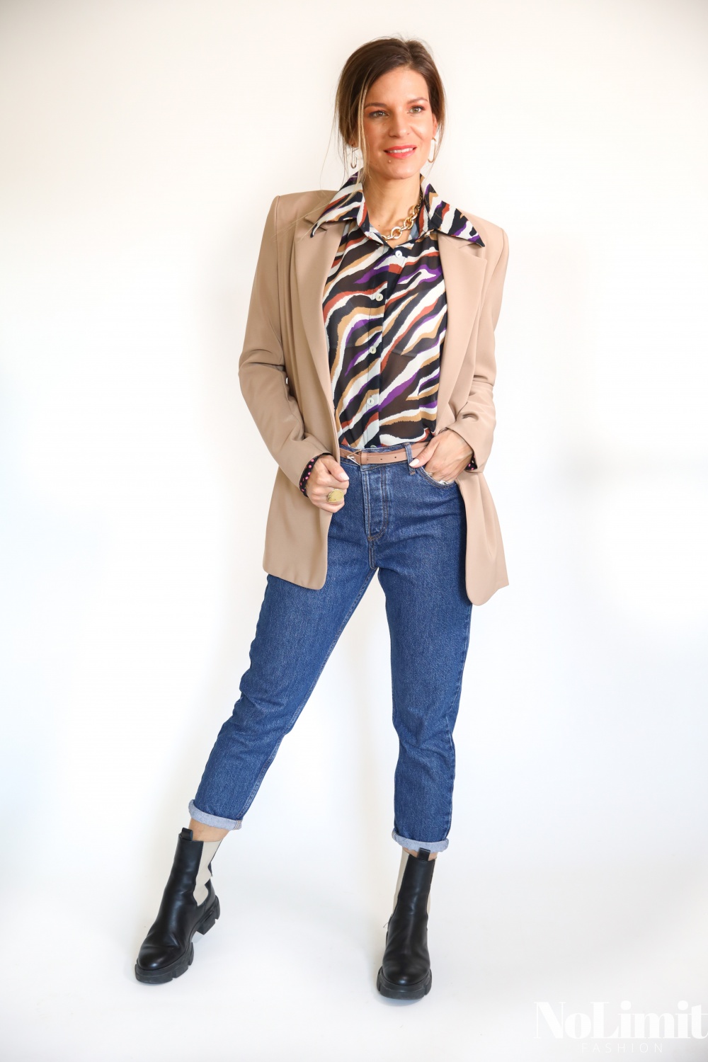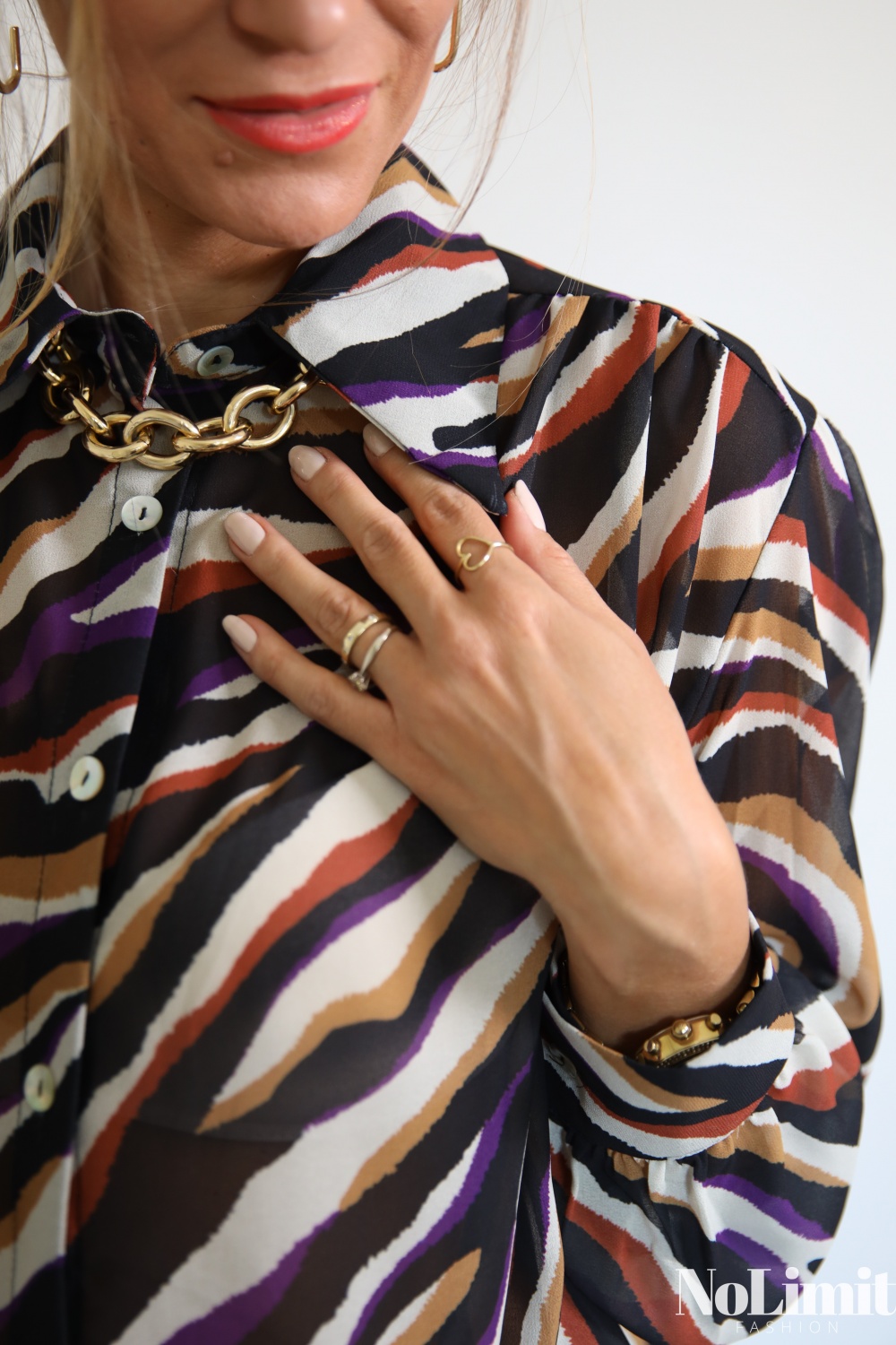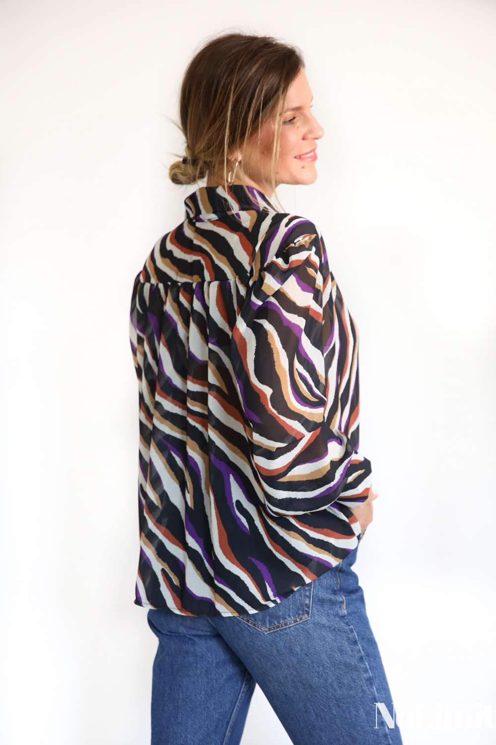 Színes zebra mintás, laza, gombos ing