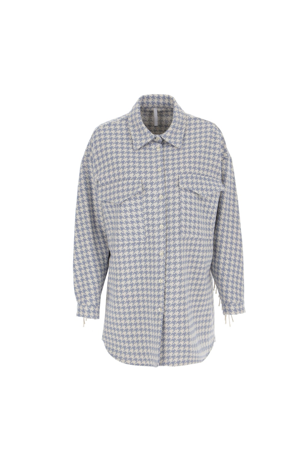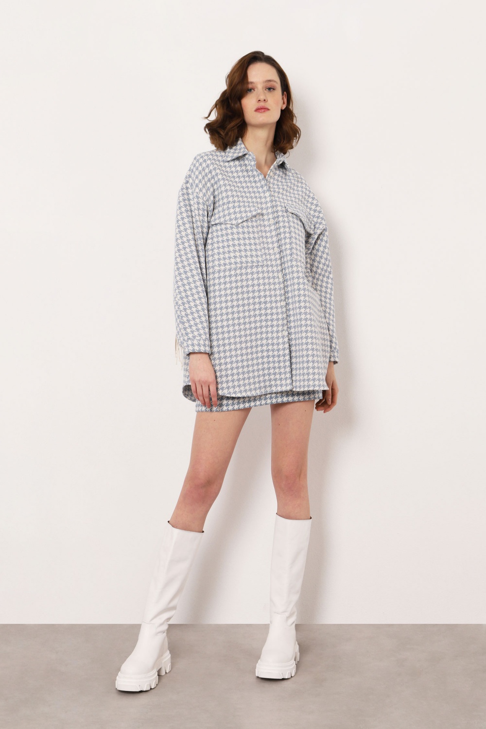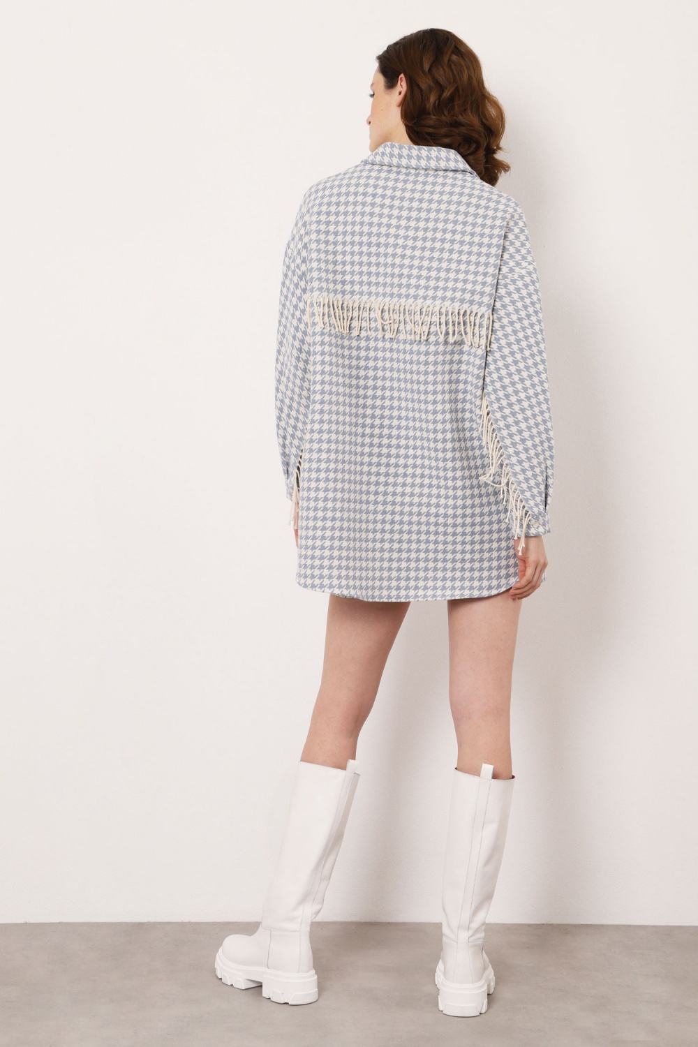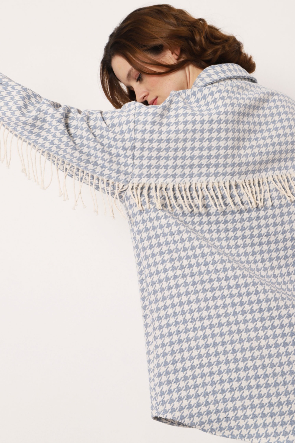 Tyúkláb mintás, oversize ing-kabát rojtos részlettel