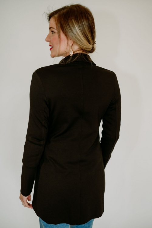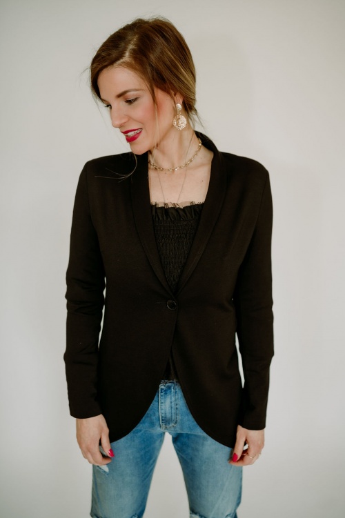• Hosszított, egygombos, karcsúsított pamutzakóFekete